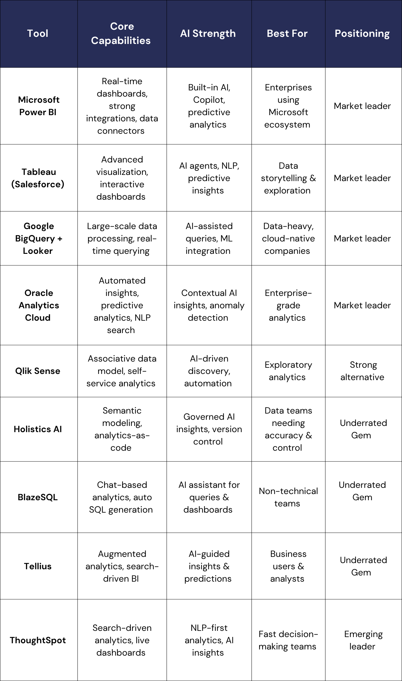 AI reporting and insight tools have moved beyond traditional data visualization - now offering automated analysis, natural language interfaces, and predictive modeling. Below is a curated mix of market leaders and underrated high-potential tools shaping the future of reporting.